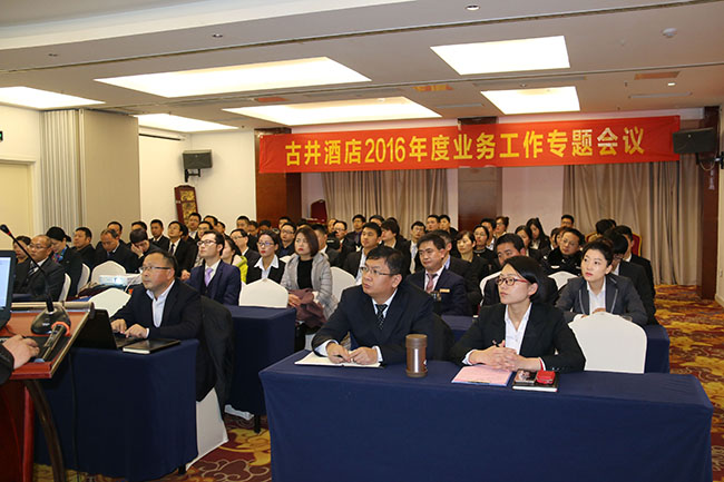 1月18日,免费pg电子试玩软件举行2016年度业务工作专题会暨年度安全工作会议,会议在合肥古井君莱酒店13楼会议室召开,公司高管、总部各业务部门负责人、各门店负责人近百人参加会议。