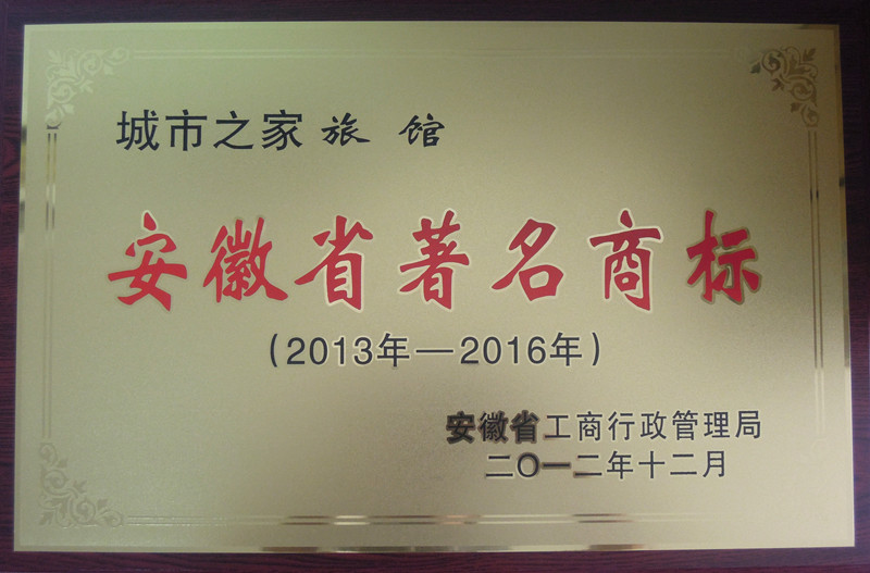 合肥市瑶海区工商局正式为公司颁发了城市之家“安徽省著名商标”证书和牌匾。
