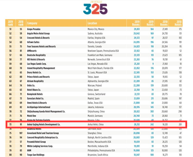 《HOTELS》权威杂志发布 古井酒店跻身“全球酒店集团325强”百强榜单